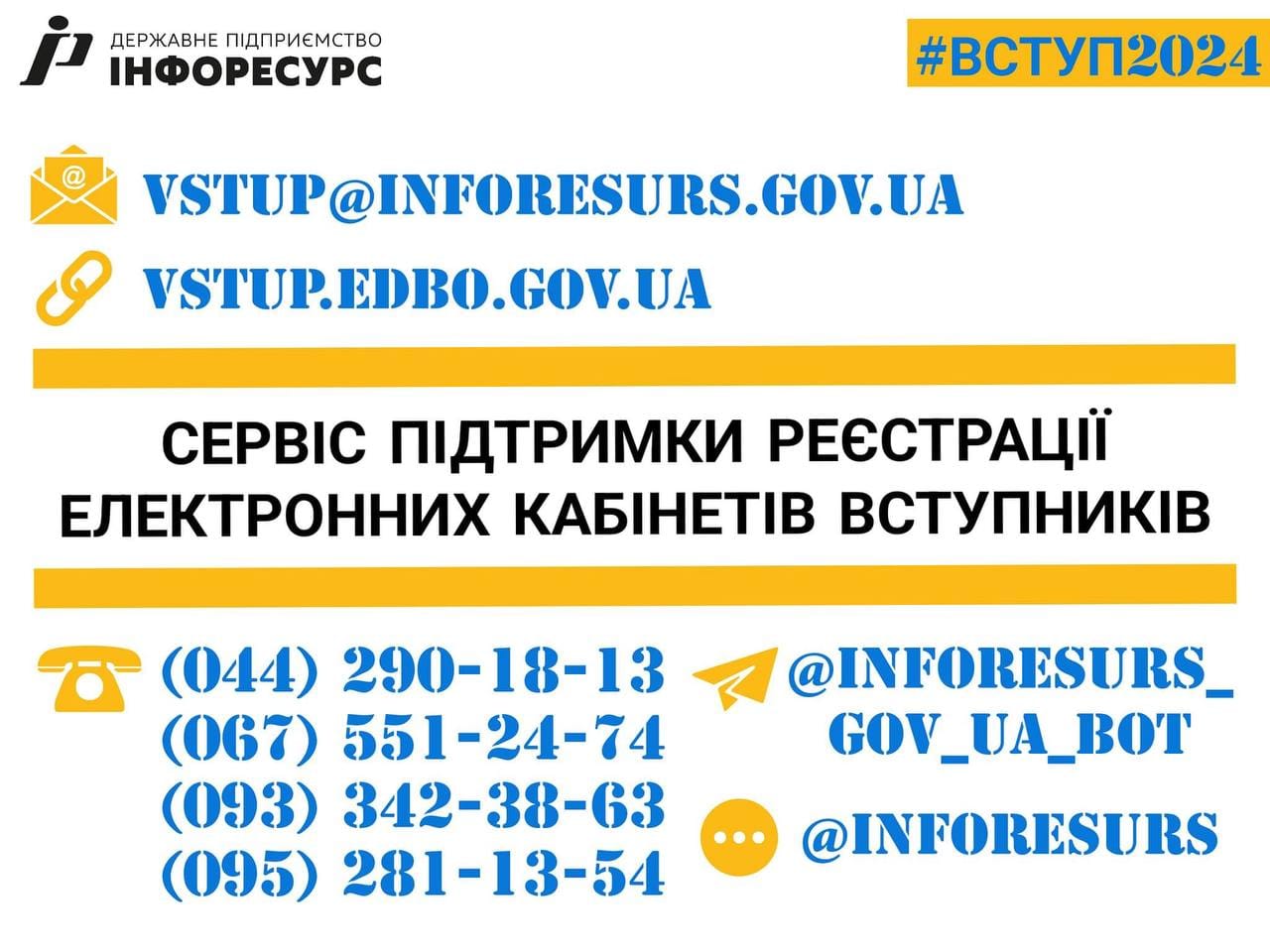 Актуальні контакти з підтримки електронних кабінетів вступників-2024.